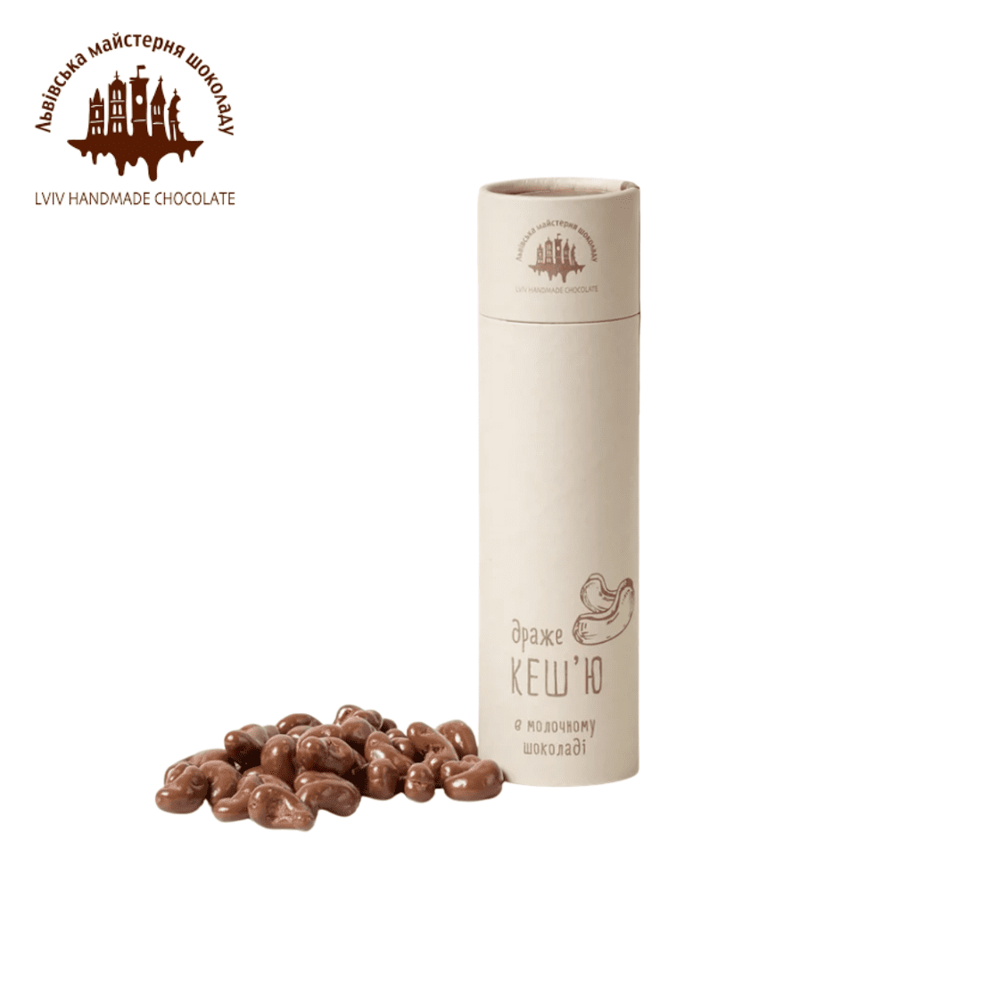 Драже з відбірним горіхом кеш’ю та молочним шоколадом. Кеш’ю славиться своїм солодким присмаком та приємним м’яким ароматом, який так вдало підкреслює смак шоколаду.