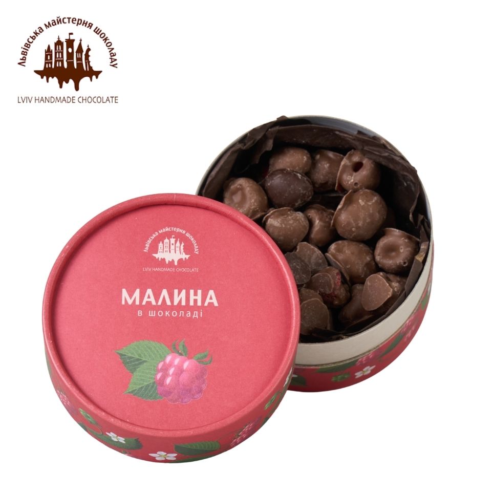 Ціла сублімована малина, щедро вкрита молочним та чорним шоколадом. Приємний аромат, солодкуватість та легенька кислинка ягід балансує з двома видами шоколаду. А подарункова коробка підкреслює унікальність виробу та його особливості.