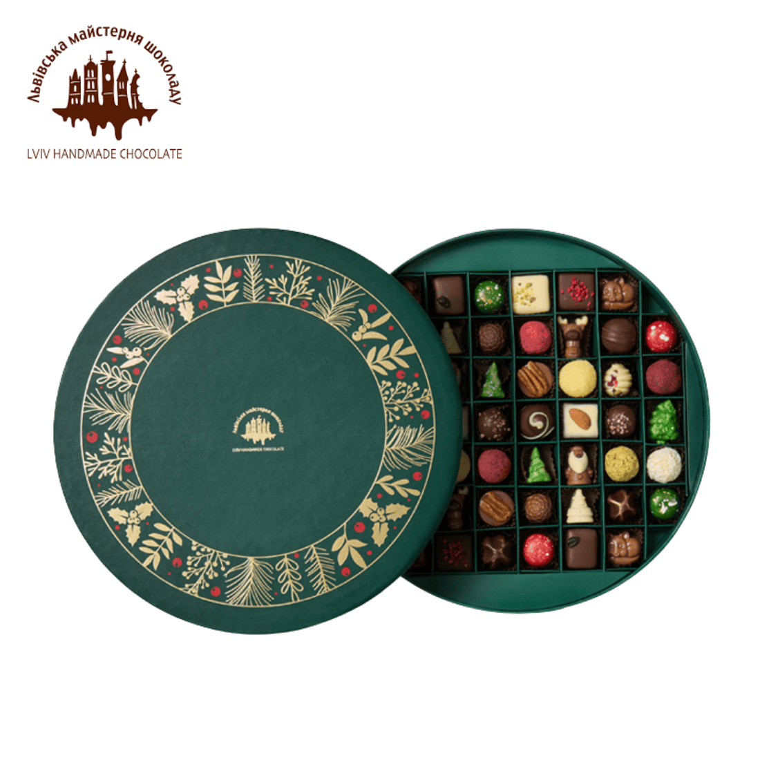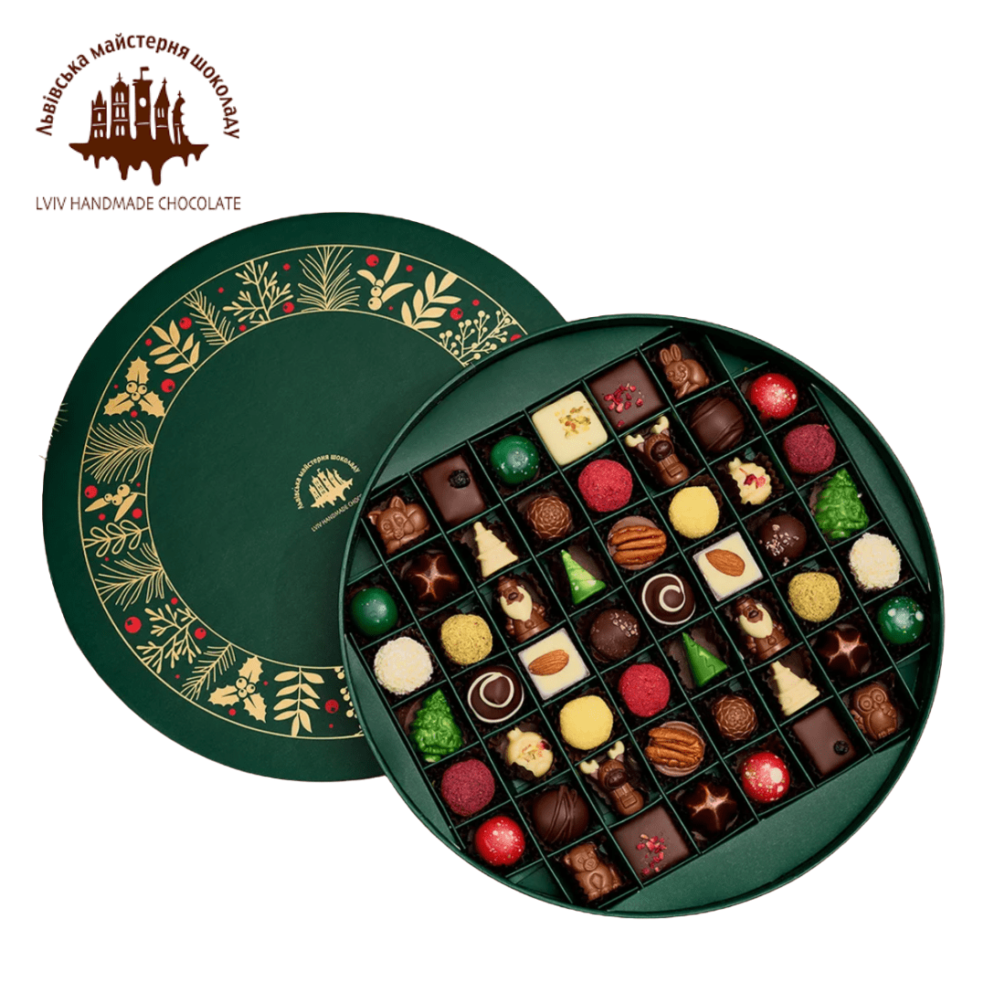 Цукерка “Дзиґа в кокосі”, Цукерка “Мармулядова ружа”, Цукерка “Краля”, Цукерка “Смородинова зваба”, Цукерка “Елеганція”, Цукерка “Віденський трюфель”, Цукерка “Бананова льоля”, Цукерка “Чорний марципан”, Цукерка “Оксамитовий трюфель”, Цукерка “Королівська”, Цукерка “Авантура”, Цукерка “Фісташкове варʼєте”, Цукерка “Фрау Цимер”, Цукерка “Бальон червоний”, Цукерка “Бальон зелений”, Цукерка “Ялиночка”, Цукерка “Лосики”, Цукерка “Сніговики”, Цукерка “Іграшка біла”, Цукерка “Різдвяна зі спеціями”, Цукерка “Смерічка”, Цукерка “Звірятка молочні з праліне”, Цукерка “Шишка”, Цукерка “Санта-Клаус”