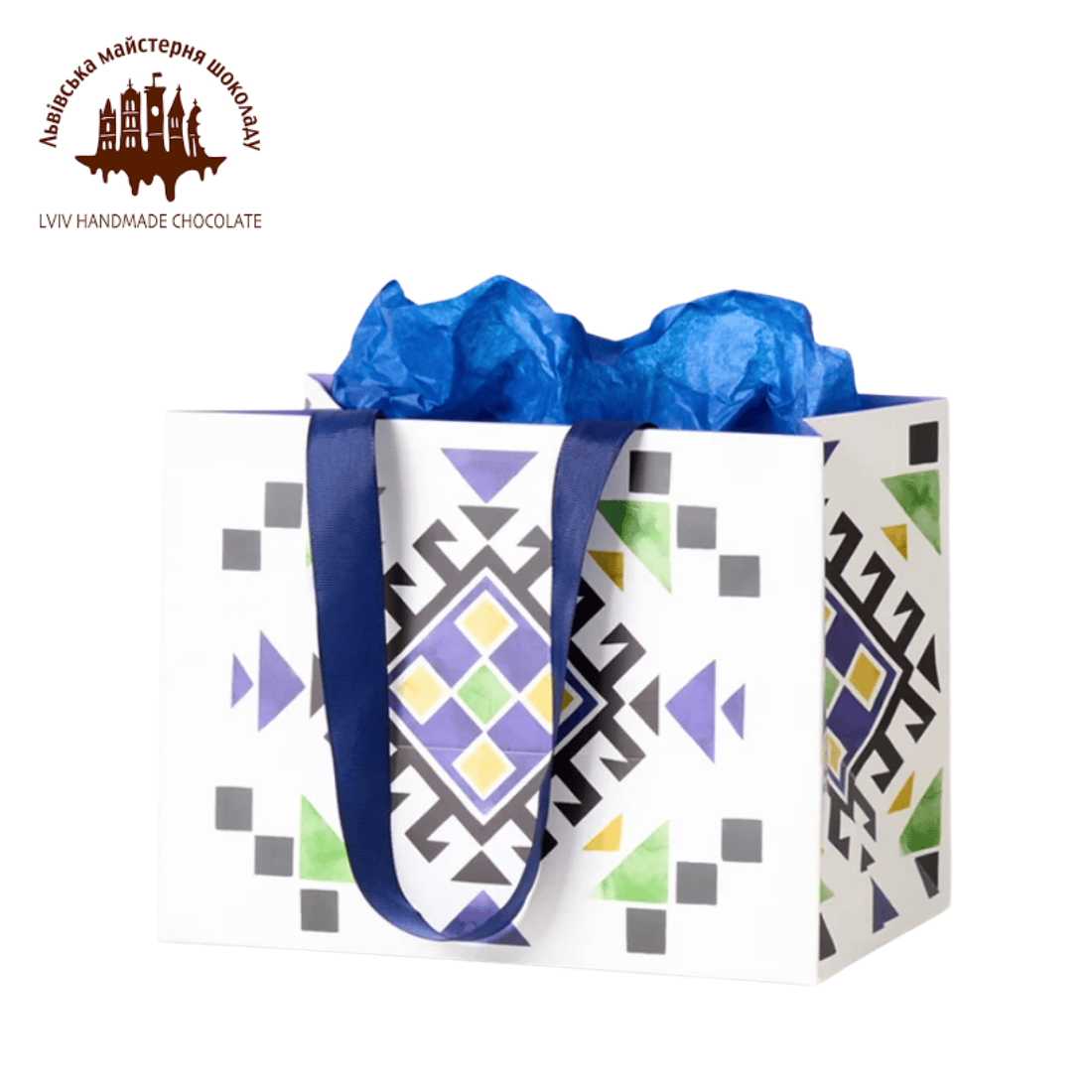 Подарунковий пакет “Кахлі Левинського” чудово пасує, аби доповнити презент ще більшим сенсом. Виготовлений з цупкого картону та декорований дизайном столітньої пічної кахлі Майстра.