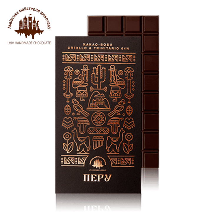 Плитка ексклюзивного чорного шоколаду з 64,5 % вмістом какао-продуктів, створена руками професійних майстрів з двох сортів какао-бобів з Перу: Criollo та Trinitario. Перше враження від цього шоколаду – фруктова нотка з легкою гірчинкою та солодким, більш вершковим смаком.