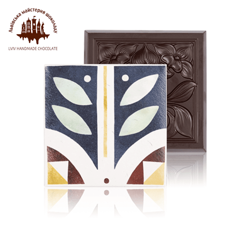 Особлива плитка чорного шоколаду у вигляді керамічної кахлі з цільним мигдалем. Унікальна колекція, натхненна постаттю та творчим спадком Івана Левинського – видатного архітектора та будівничого Львова кінця ХІХ – початку ХХ століть.