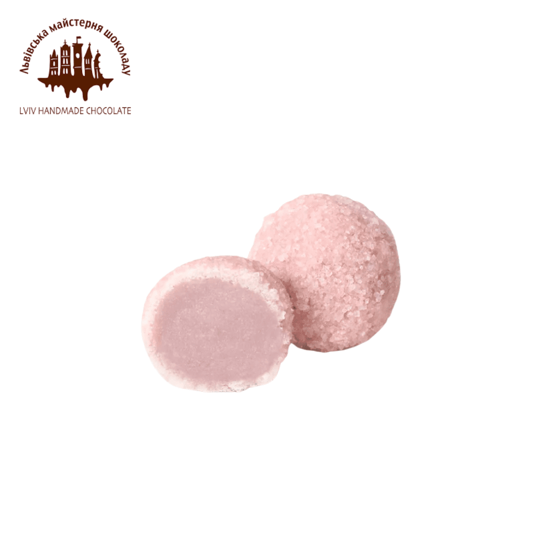 Шоколад білий (цукор, какао-масло, молоко сухе незбиране, емульгатор: соєвий лецитин, ваніль натуральна), цукор, суміш на основі рослинних жирів (рослинний пальмовий гідрогенізований жир, цукор, молочний білок, стабілізатори (сорбітовий сироп, целюлоза, Е466), емульгатори (Е472е, Е435, соєвий лецитин), сіль харчова, барвник: бета-каротин, ароматизатор вершковий), масло вершкове, ароматична суміш малина (сироп глюкози, цукор, малиновий концентрат, вода, лимонний концентрат, морквяний концентрат, натуральні ароматизатори, сафлоровий концентрат, цитрусові волокна, концентрат бузини, чорничний концентрат), начинка на основі білого шоколаду (білий шоколад (цукор, молоко сухе незбиране, какао-масло, емульгатор: соєвий лецитин, ароматизатор “Ваніль”), рафіновані рослинні олії: пальмова і ріпакова, молочний жир), барвник натуральний “Буряк”, горілка.