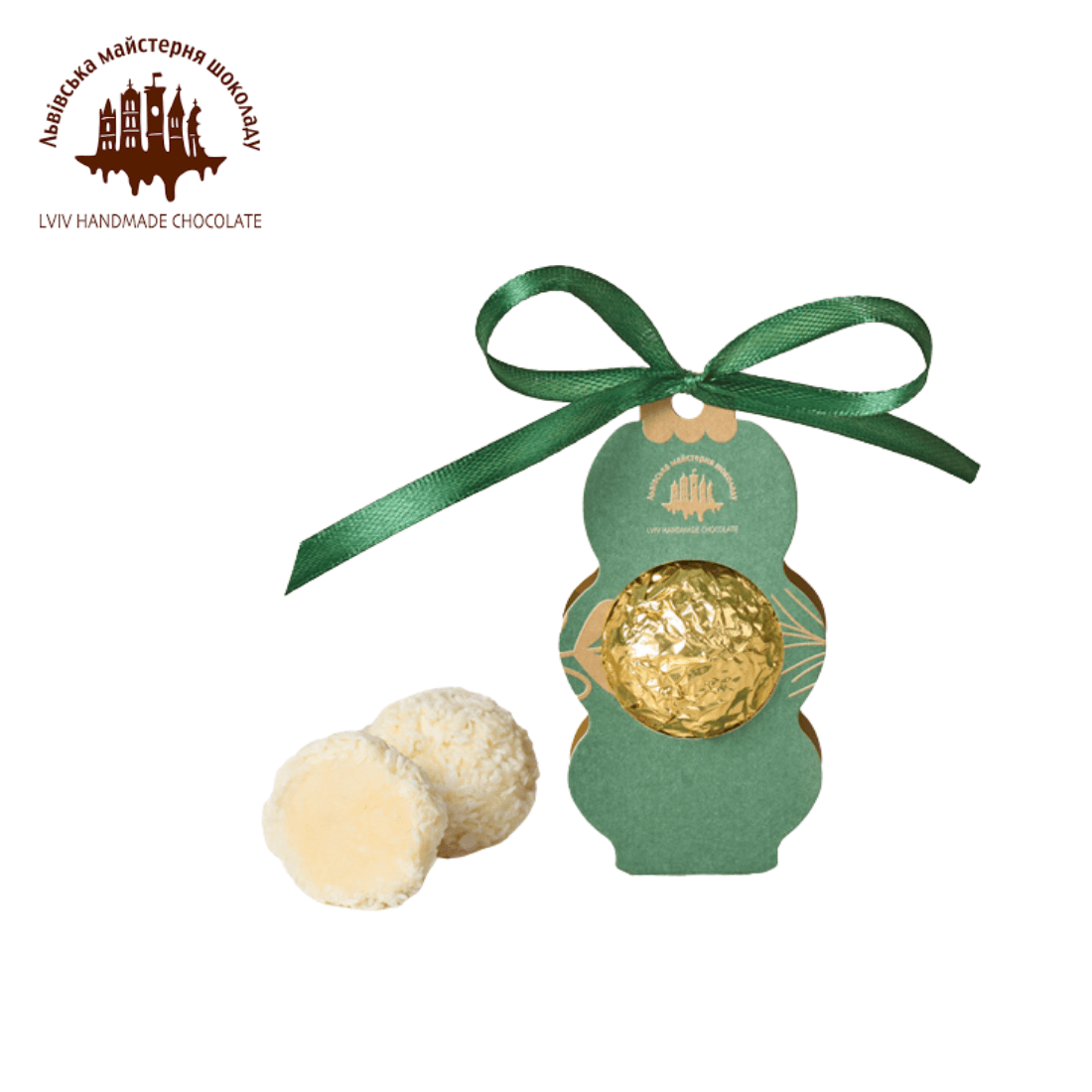 Трюфель з особливим настроєм, який передає легкий крем на основі білого шоколаду, вкритий тендітним шаром ароматного кокоса. Така цукерка стане справжньою окрасою святкової ялинки вдома.