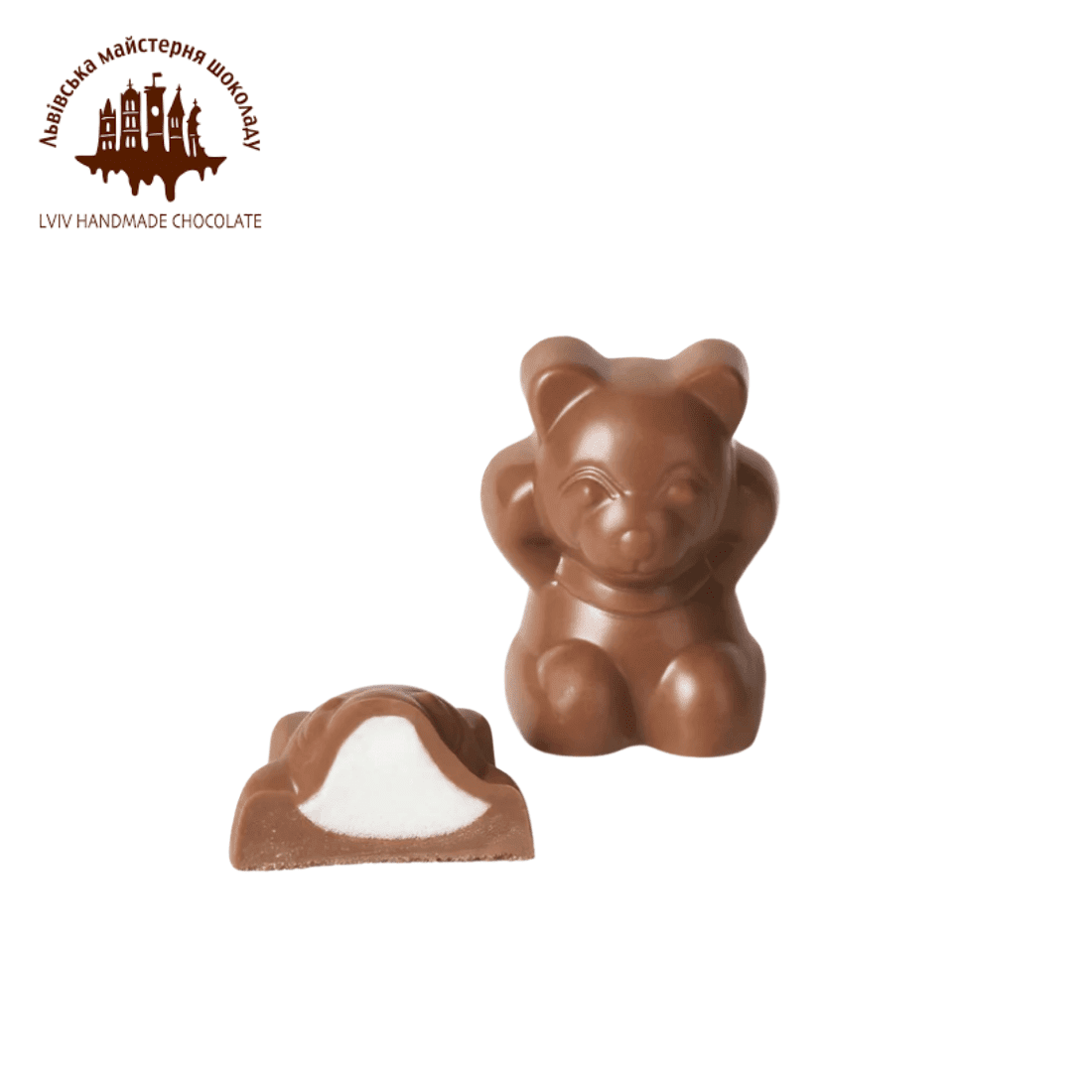 Цукерка у вигляді ведмежатка з молочного шоколаду. Всередині – повітряний ванільний маршмелоу власного виробництва. Таке поєднання смаків точно буде до вподоби найменшим ласунам.